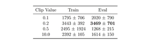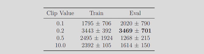Hopper, I reduced the clipping parameter to $0.1$. My preliminary experiments with $\epsilon=0.2$ (the standard value used inHalfCheetah) resulted in training collapse.Fragility of the Gait: