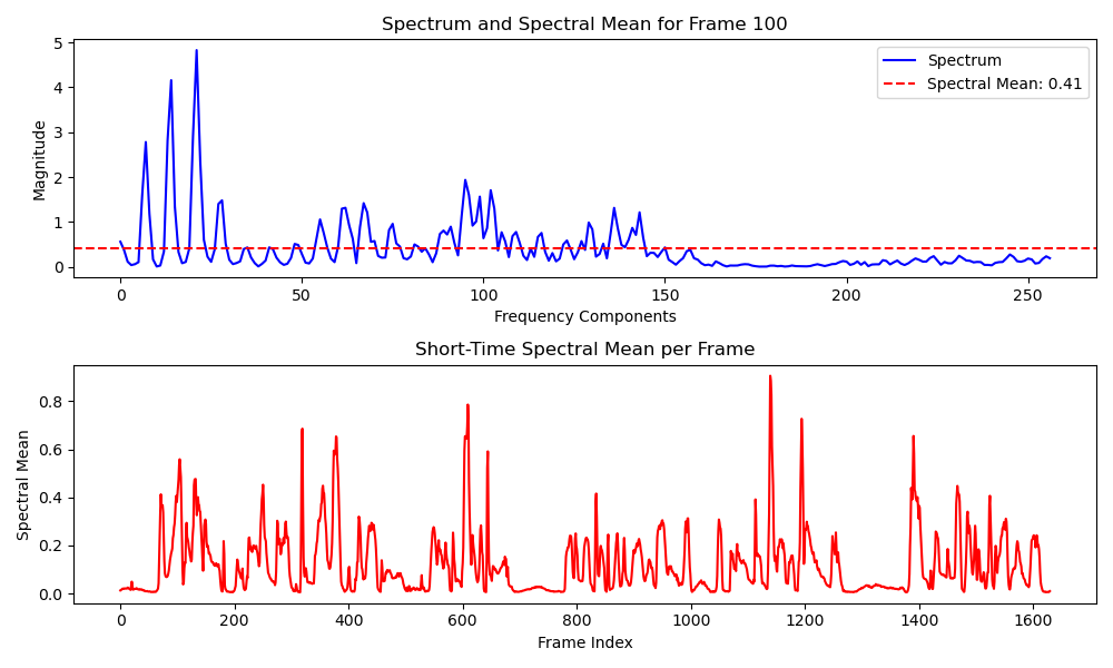 $$ \mu_n = \frac{\sum_{k=1}^K\mid X(n, k)\mid}{K} $$where $X(n, k)$ is the Fourier transform magnitude at bin $k$ in $n-$th frame, and $K$ is the number of bins.